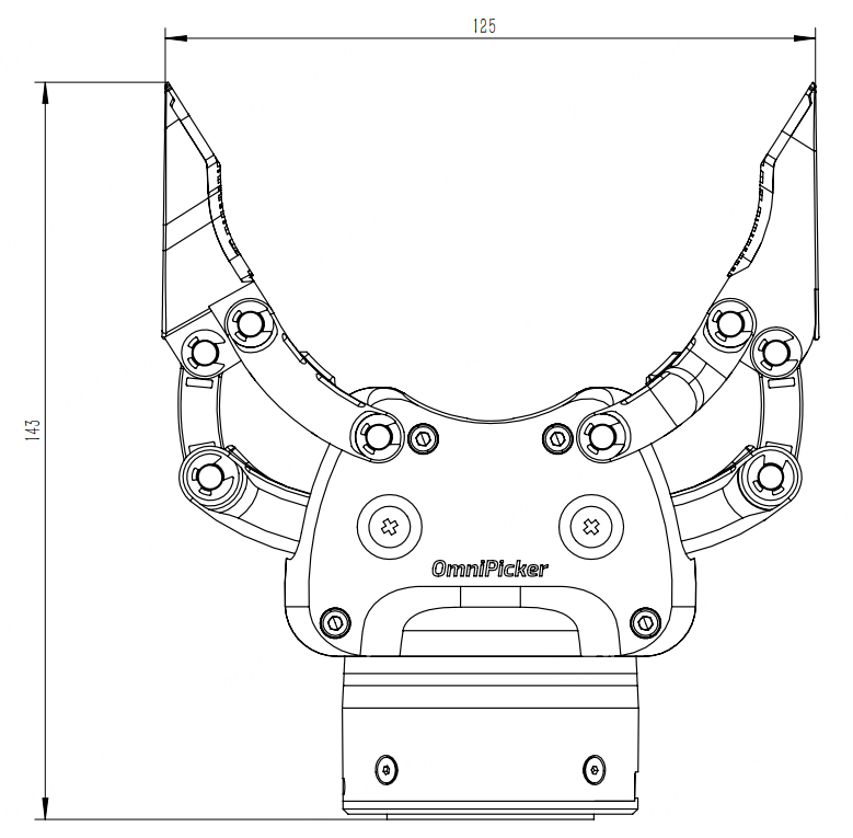 用户如将OmniPicker接到其他机械臂上,可参考如下安装接口图纸自行设计转接件,并按照3.2 灵犀X1组件作业说明 完成组装。
